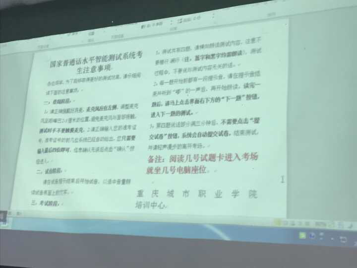 待中考试的同学认真阅读普通话考试注意事项,拿着普通话培训时