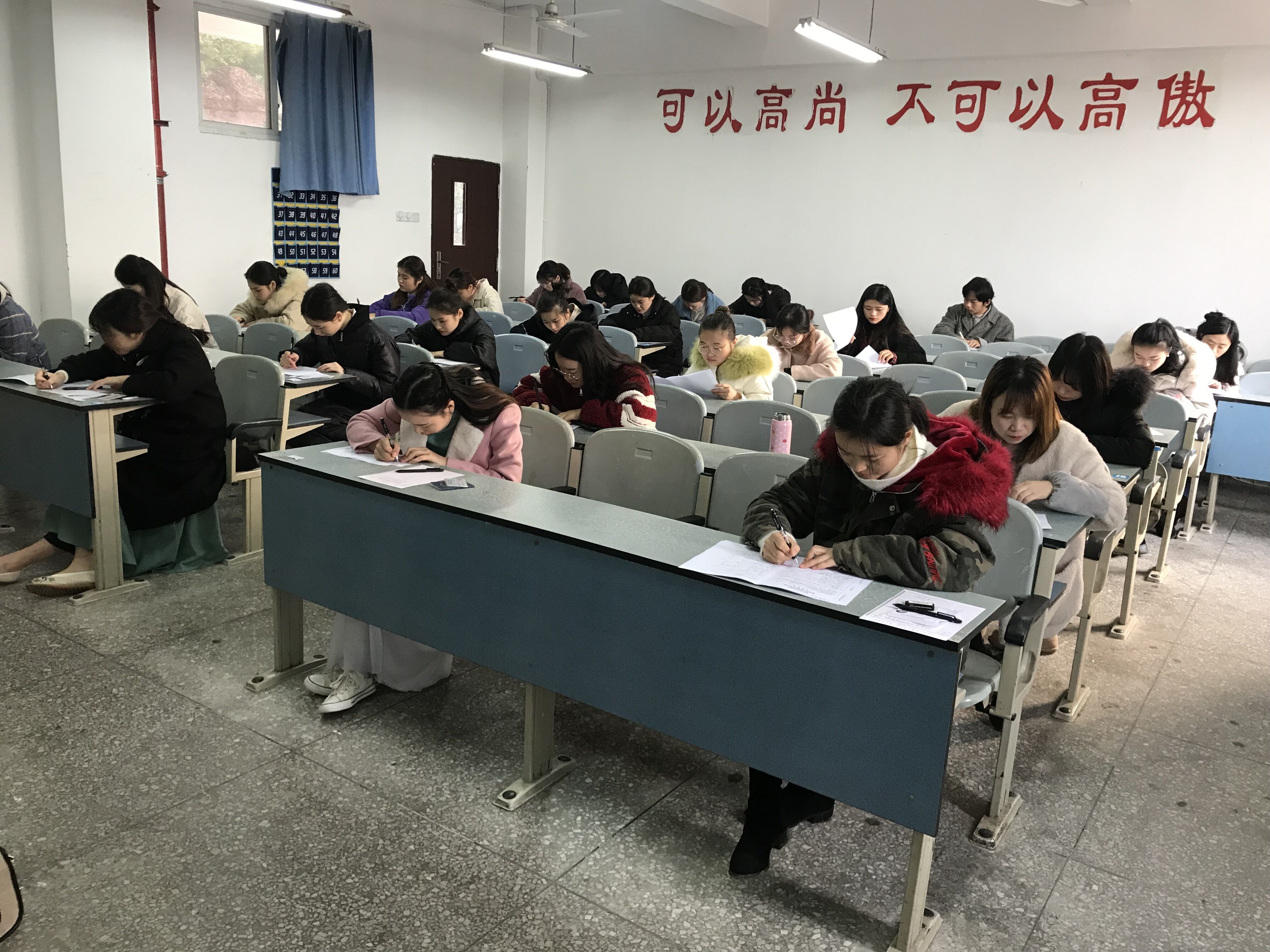 考生在文华楼105教室参加永川分鉴定中心鉴定的茶艺师四级理论