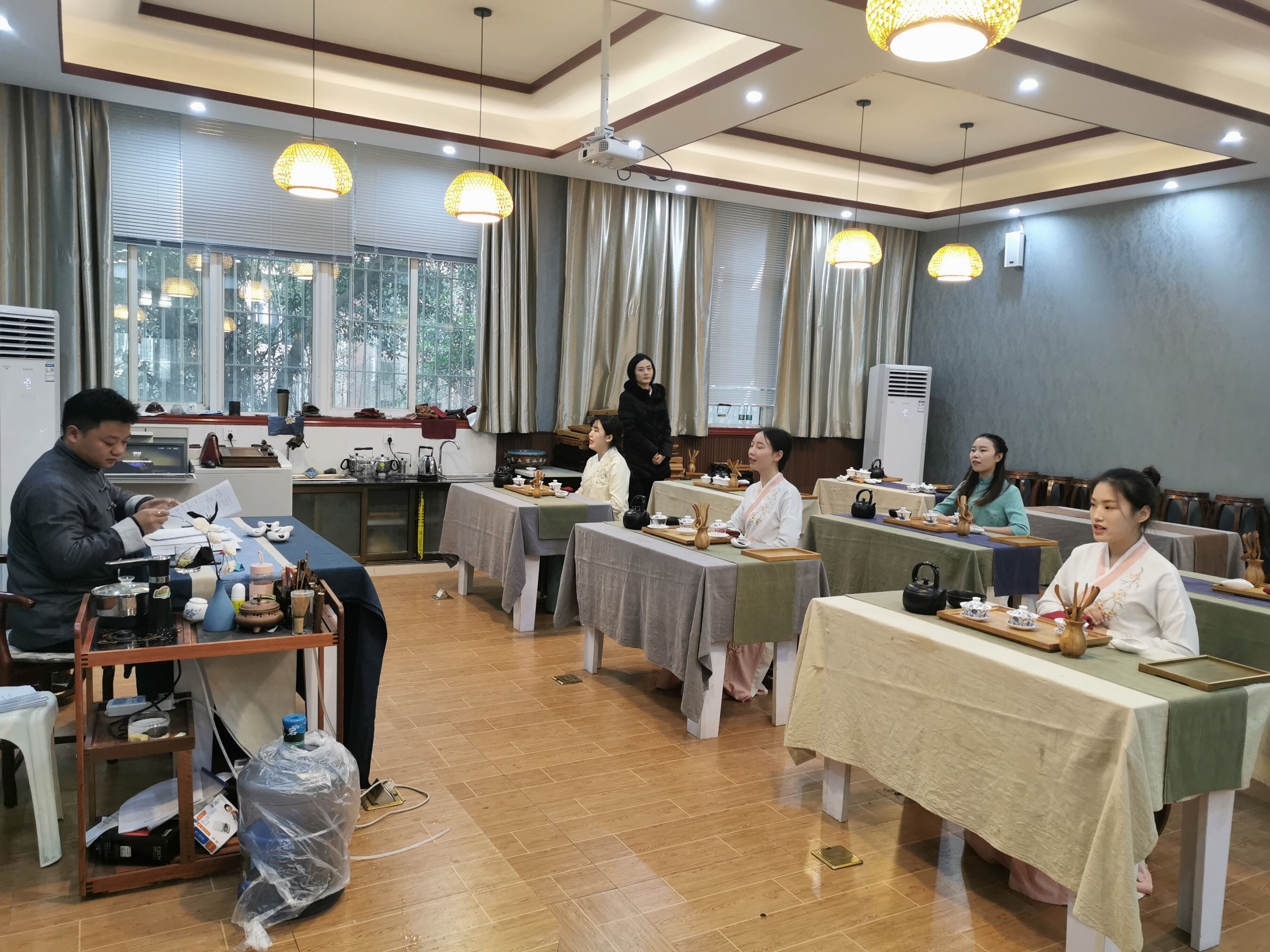 在理论考试结束之后,同学们在茶艺师实训室参加茶艺师实际