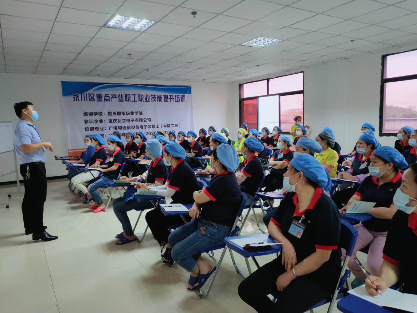 525日,太阳集团在重庆弘立电子有限公司开设的永川区重点产业职工职业技能提升培训班正式开班。本次培训工种为广电和通信设备电子装接工(中级),培训人数150人,培训时长1个月。